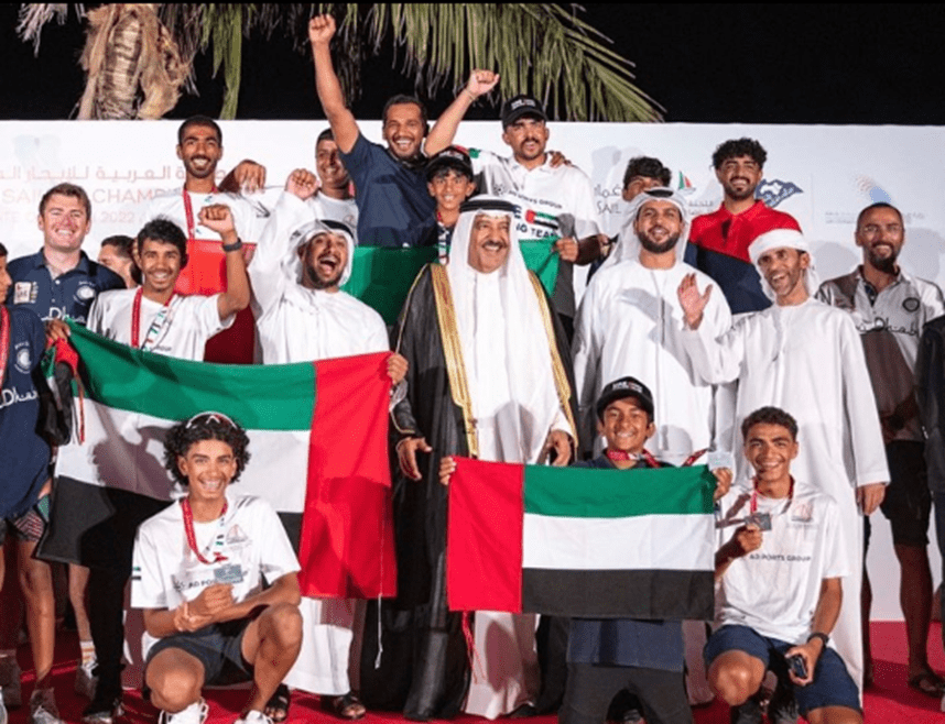 منتخب الإمارات للشراع الحديث يحتفل بفوزه بثمانية ميداليات بحضور سعادة الشيخ خليفة بن عبدالله ال خليفة رئيس الاتحاد العربي للشراع